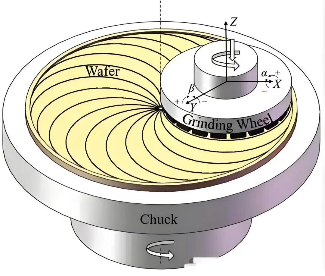 • 研磨技术:使用研磨机,通过旋转的研磨盘与晶圆背面接触,借助研磨颗粒的磨削作用去除材料。研磨盘材质、研磨颗粒大小及研磨液成分都会影响减薄速率与表面质量。