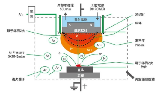 溅射镀是在低真空环境下,利用高能离子(如氩离子)轰击镀膜材料靶材表面,使靶材原子或分子获得足够能量而逸出,这些逸出的粒子沉积到基底表面形成薄膜。在溅射过程中,离子源产生的离子在电场作用下加速撞击靶材,通过动量传递使靶材原子溅射出来。常见的溅射方法有直流溅射、射频溅射等。