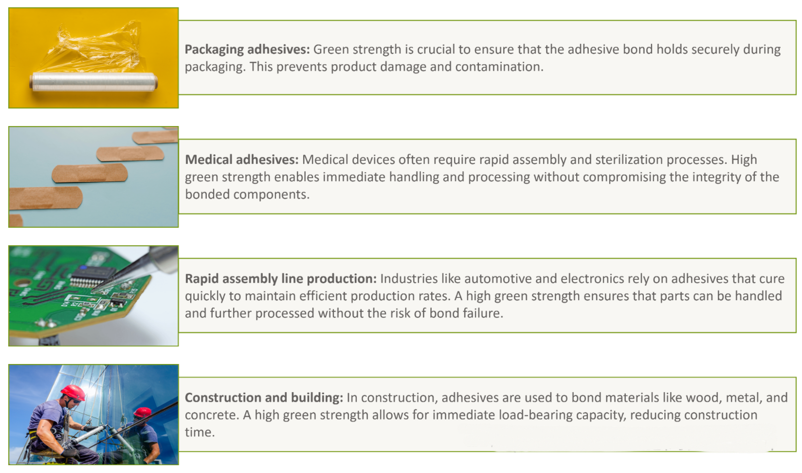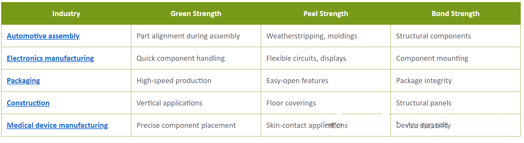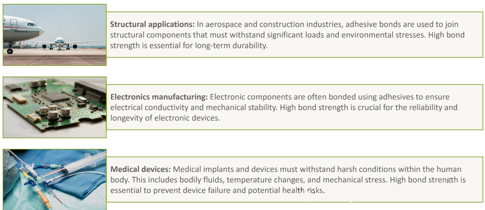 以下是优先考虑特定粘合剂强度的行业和应用示例(例如,汽车、航空航天、)。