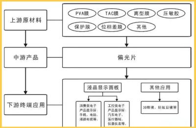 在偏光片的原料成本构成中,PVA膜和TAC膜的成本占据主导地位,尤其是TAC膜,其成本占比高达约50%,而PVA膜则约占12%。这显示出偏光片在显示产业链中具有相对较高的利润空间。