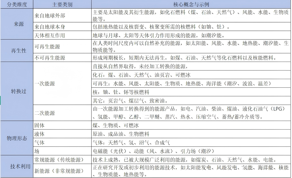 能源是自然界中能为人类提供某种形式能量的物质资源。包含煤炭、原油、天然气、煤层气、水能、核能、风能、太阳能、地热能、生物质能等一次能源和电力、热力、成品油等二次能源,以及其他新能源和可再生能源。
