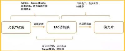 市场上,多数TAC膜供应商,如日本Fujifilm、Konica Minolta、日本造纸,以及台湾新光合成纤维和韩国晓星等,都同时提供光板TAC膜和TAC功能膜。此外,也有部分企业选择采购光板TAC膜,并通过表面处理来满足特定需求,如大日本印刷、toppan印刷、琳得科和日本东山等。另外,还有一些偏光片生产企业,例如LG化学和日东电工,它们自身便具备对TAC膜进行表面处理的能力,从而能更好地满足自身的生产需求。总的来说,光板TAC的表面处理工作可以由TAC制造商、涂布企业或偏光片制造商来完成。